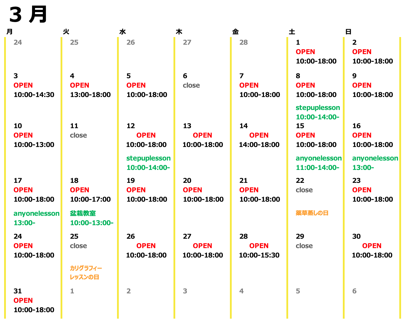 > 3月のスケジュールアップしました
