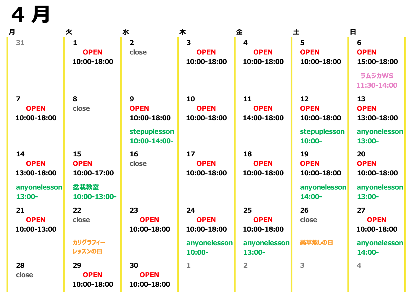 > 4月のスケジュールアップしました