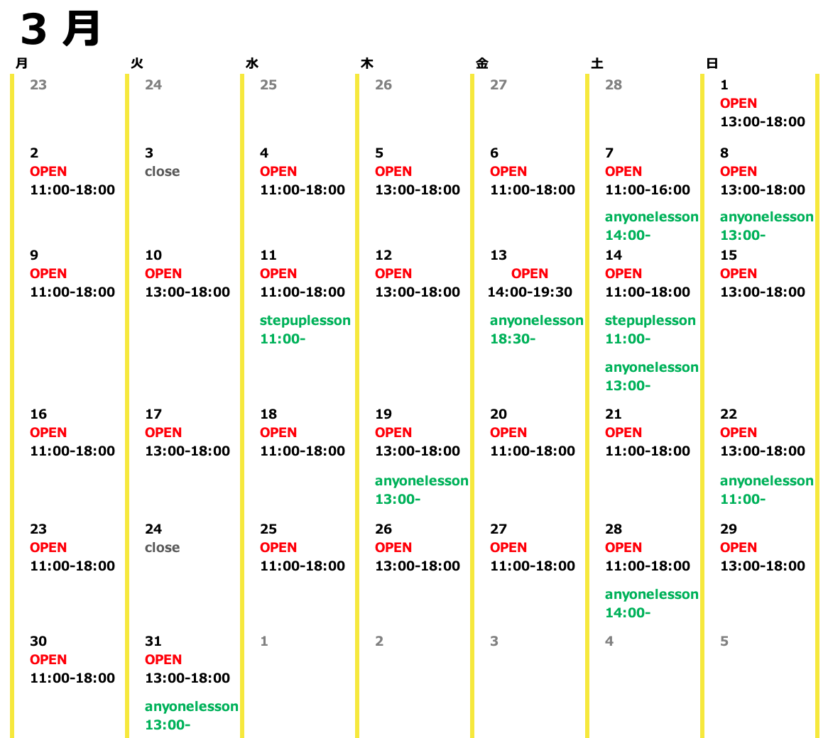 3月のスケジュールアップしました