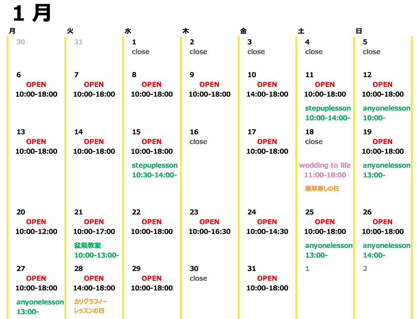 > 1月のスケジュールアップしました